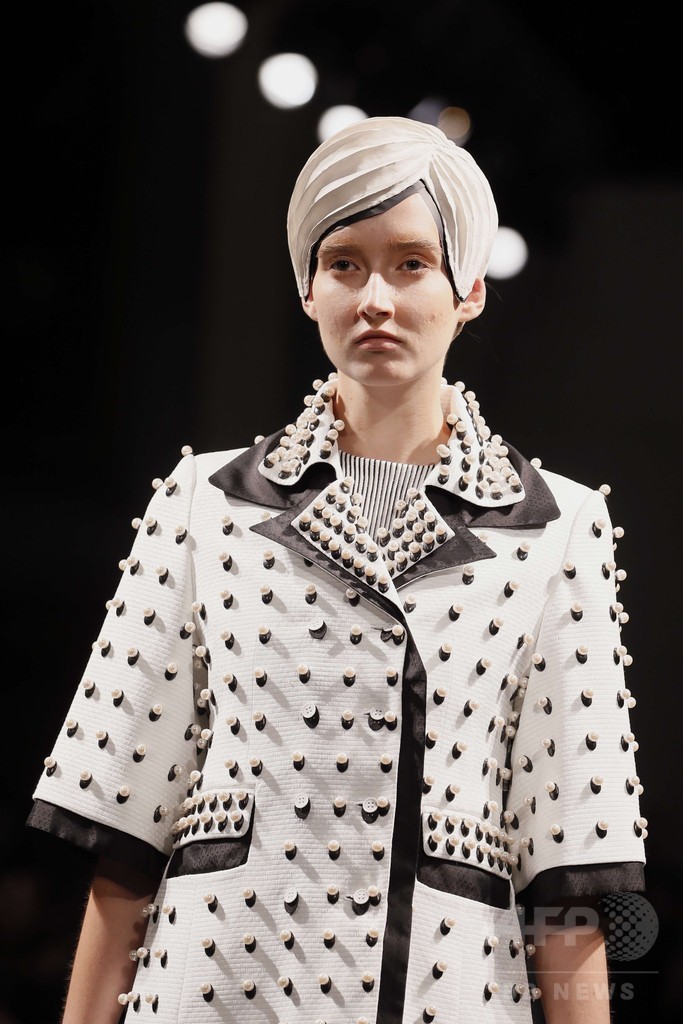 23日には、森永邦彦(Kunihiko Morinaga)がデザイナーを務める「アンリアレイジ(ANREALAGE)」が新作を発表した。(c)AFP