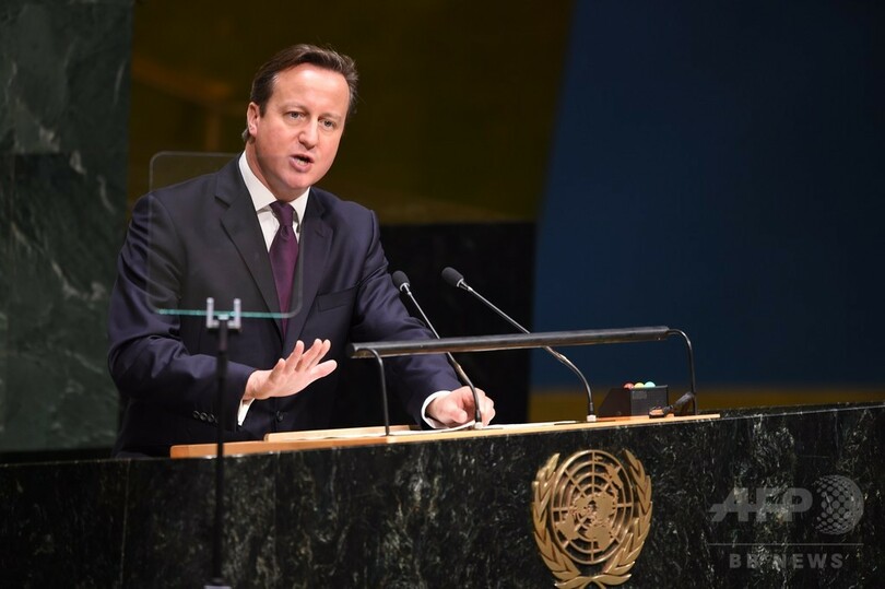 英ニュース専門局スカイニューズ(Sky News)が撮影した映像の中で、国連(UN)総会に出席するため訪米中のキャメロン首相は、マイケル・ブルームバーグ(Michael Bloomberg)前ニューヨーク(New York)市長を相手にこう話している。