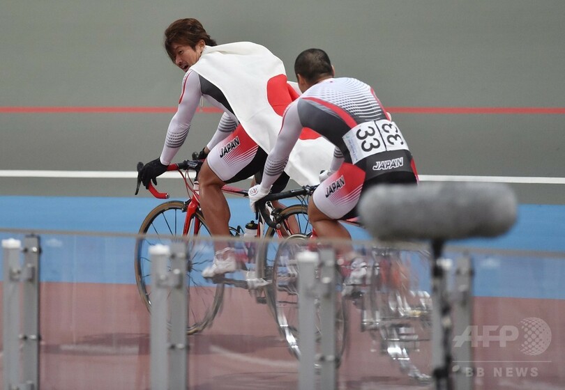 日本チームの関係者はAFPに対し、「ロード用自転車の方が、日の丸を持ちやすかった」とコメントしている。(c)AFP