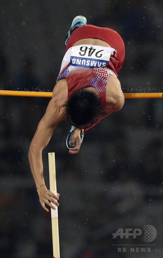 中国の薛長鋭(Xue Changrui)は、沢野と同じ5メートル55を記録したものの、試技数の差で金メダルとなり、韓国の陳敏燮(Jin Min-Sub)が5メートル45で銅メダルを獲得している。(c)AFP