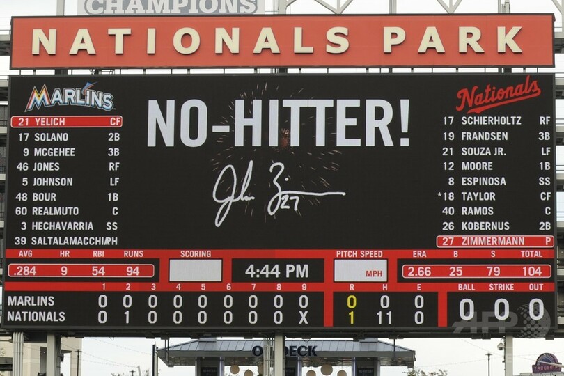 【9月29日 AFP】14MLBは28日、各地で試合が行われ、ワシントン・ナショナルズ(Washington Nationals)のジョーダン・ジマーマン(Jordan Zimmermann)投手が、今季レギュラーシーズン最終戦となったマイアミ・マーリンズ(Miami Marlins)戦でノーヒットノーランを達成した。試合はナショナルズが1-0で勝利した。