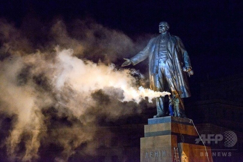 1960年代に建造されたレーニン像は高さ8.5メートルで、国内最大。旧ソ連の支配の象徴であり、昨年から続く親ロシア派と親欧派との対立ではロシアの影響力の表れとみなされ、論争の種ともなっていた。