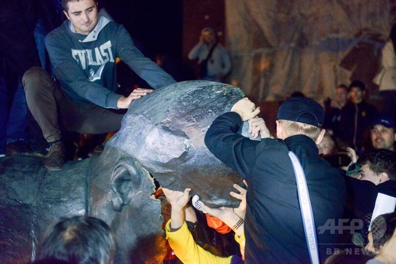 1960年代に建造されたレーニン像は高さ8.5メートルで、国内最大。旧ソ連の支配の象徴であり、昨年から続く親ロシア派と親欧派との対立ではロシアの影響力の表れとみなされ、論争の種ともなっていた。