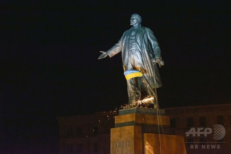 1960年代に建造されたレーニン像は高さ8.5メートルで、国内最大。旧ソ連の支配の象徴であり、昨年から続く親ロシア派と親欧派との対立ではロシアの影響力の表れとみなされ、論争の種ともなっていた。