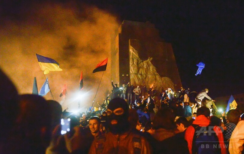 ウクライナ東部にありながらウクライナ政府寄りのハリコフ州当局は、既にレーニン像の撤去を約束していたが、先に住民たちが手を下した形だ。州内務省は、歴史的建造物破壊の容疑で同日夜に捜査を開始したが数時間で終了し、この一件による負傷者もなかったと発表している。(c)AFP