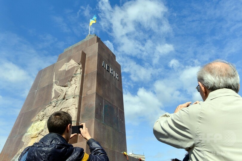 1960年代に建造されたレーニン像は高さ8.5メートルで、国内最大。旧ソ連の支配の象徴であり、昨年から続く親ロシア派と親欧派との対立ではロシアの影響力の表れとみなされ、論争の種ともなっていた。