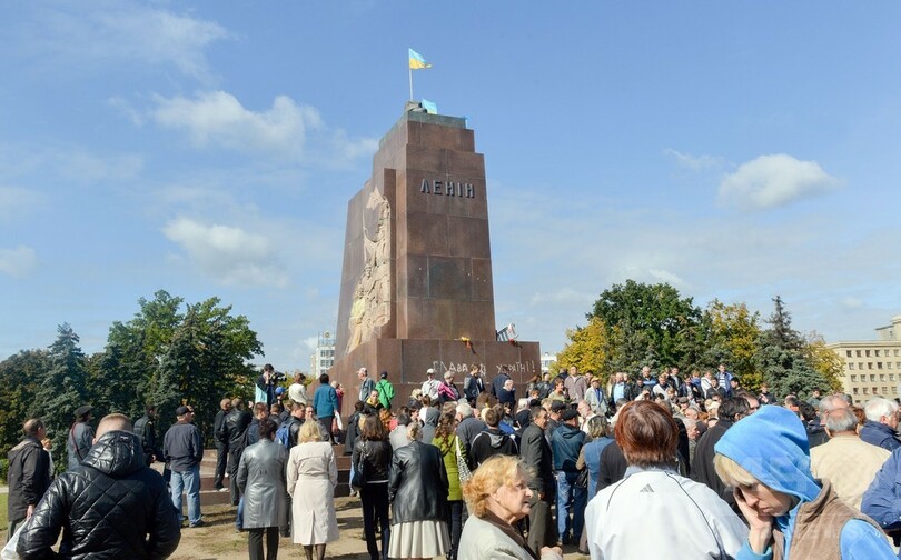 1960年代に建造されたレーニン像は高さ8.5メートルで、国内最大。旧ソ連の支配の象徴であり、昨年から続く親ロシア派と親欧派との対立ではロシアの影響力の表れとみなされ、論争の種ともなっていた。