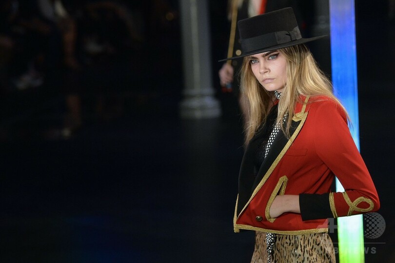 29日には、エディ・スリマン(Hedi Slimane)が手がける「サンローラン(Saint Laurent)」が新作を発表し、ランウェイにはモデルのカーラ・デルヴィーニュ(Cara Delevingne)が登場した。(c)AFP