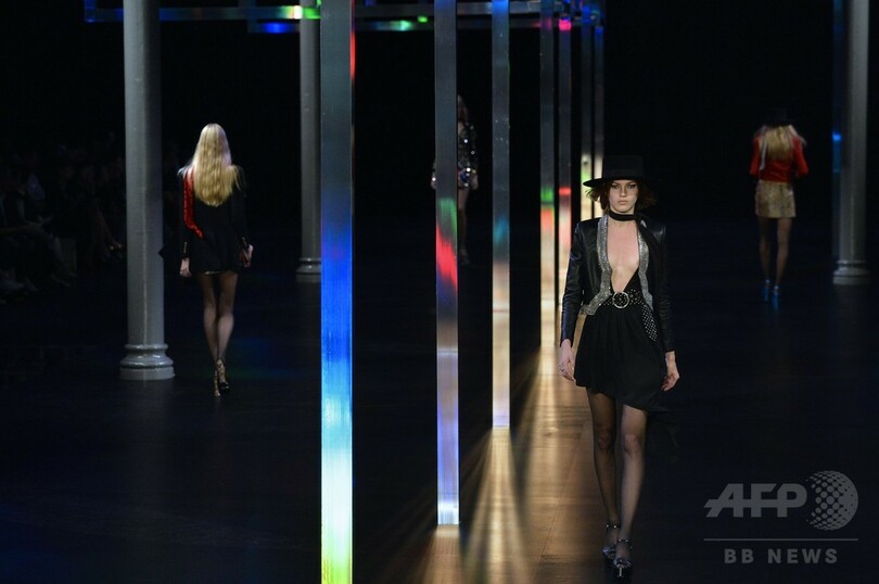 29日には、エディ・スリマン(Hedi Slimane)が手がける「サンローラン(Saint Laurent)」が新作を発表し、ランウェイにはモデルのカーラ・デルヴィーニュ(Cara Delevingne)が登場した。(c)AFP