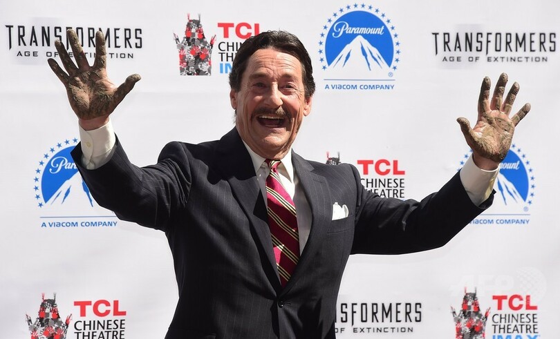 同地には、多くのハリウッドスターらの手型が刻まれているが、同日の式典に臨んだのは、映画『トランスフォーマー・ロストエイジ(Transformers: Age of Extinction)』でオプティマス・プライムの声優を務めたカナダ人のピーター・カレン(Peter Cullen)氏。(c)AFP