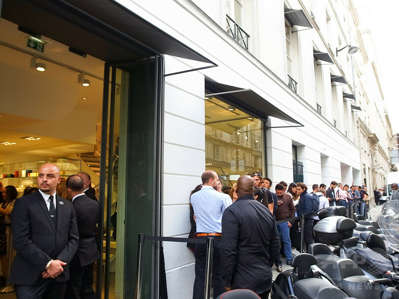 この日、パリコレ取材を目的に訪れていた世界中のファッショニスタやジャーナリストらが新デバイスをいち早く体験しようと駆けつけ、店舗前に行列を作った。(c)MODE PRESS