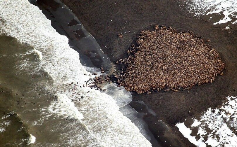 アラスカの海岸に3万5000頭のセイウチ、気候変動が原因