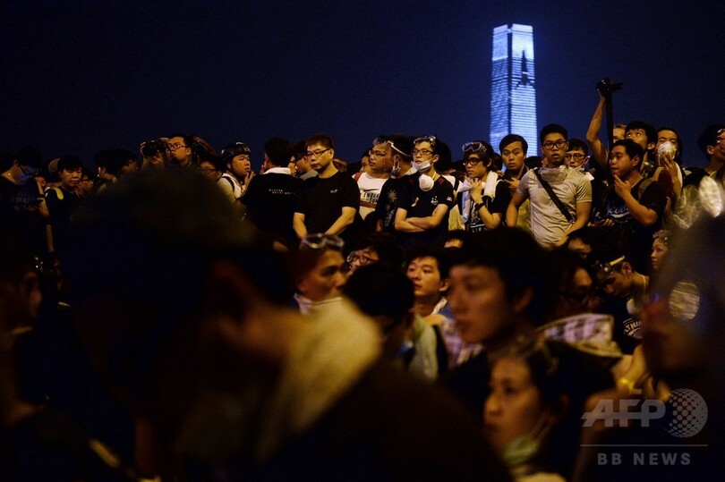 またデモの中心組織であるオキュパイ・セントラル(占領中環、Occupy Central)も、当局と学生との対話が「現在の政治的こう着状態に転機をもたらす」ことを願うとして梁長官の提案を歓迎する一方で、梁長官の辞任は引き続き要求していくと強調した。(c)AFP/Jerome TAYLOR