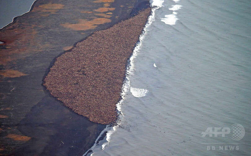 「北極海洋ほ乳類航空調査(Aerial Surveys of Arctic Marine Mammals)」プロジェクトに参加するミーガン・ファーガソン(Megan Ferguson)氏によると、セイウチの数は当初1か所の海岸に1500頭程度しかいなかったが、数日間で爆発的に増え、ほぼ24倍の3万5000頭になったと推定されている。