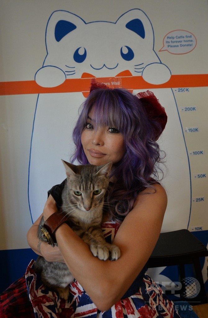 【10月3日 AFP】米ロサンゼルス(Los Angeles)のチャイナタウン(Chinatown)に2日、客が猫と触れ合えるカフェ「キャットフェ(Catfe)」が期間限定でオープンした。人気が出れば、正式に市内に店舗を構える計画だ。
