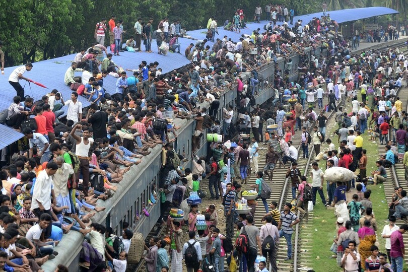 「犠牲祭」に帰省する人で溢れる列車、バングラデシュ