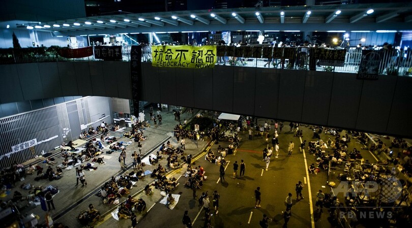 【10月6日 AFP】香港(Hong Kong)で、2017年の香港行政長官選挙をめぐり1週間以上にわたり主要道路の占拠を続ける民主派のデモ隊は、政府が要求する退去の期限まで残り数時間となった6日未明も、断固として道路占拠を続けている。