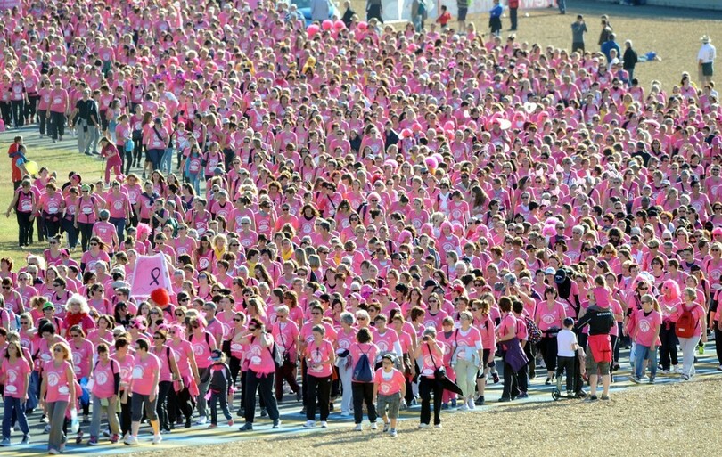 ピンク一色、乳がん啓発マラソン大会 仏
