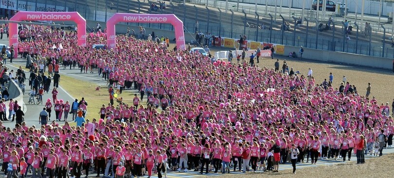 ピンク一色、乳がん啓発マラソン大会 仏