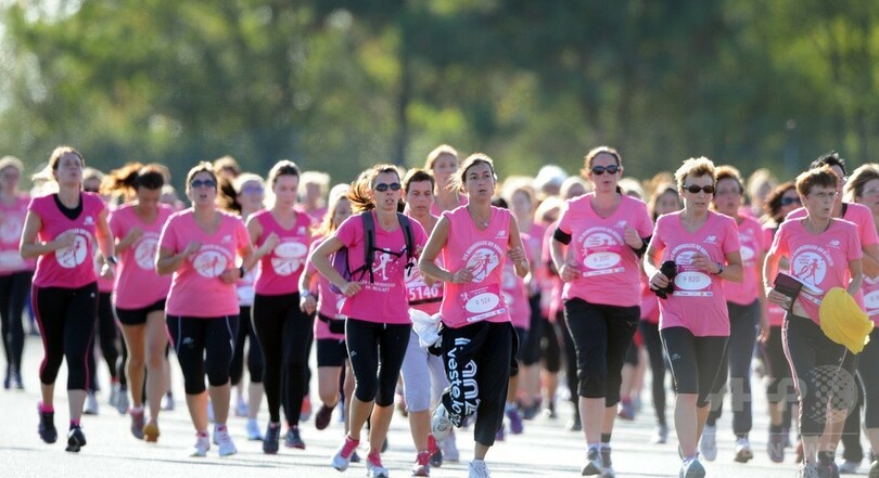ピンク一色、乳がん啓発マラソン大会 仏