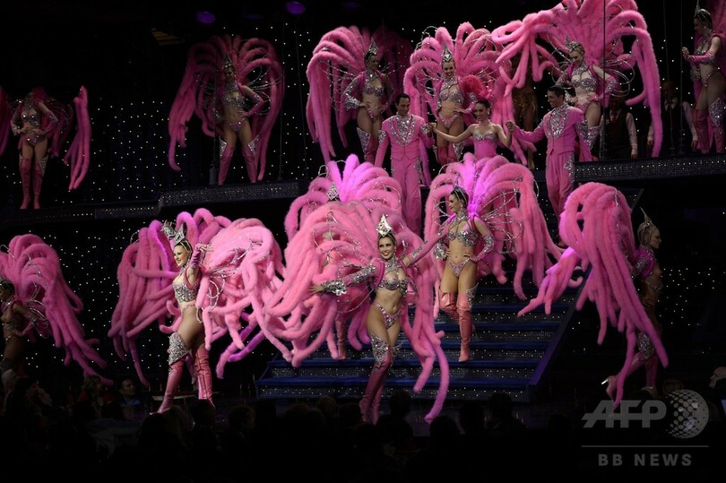 1889年に誕生したムーランルージュはパリ最古のキャバレーで、フレンチカンカンの本場として知られるほか、仏画家アンリ・ド・トゥールーズ・ロートレック(Henri Toulouse-Lautrec)の絵に登場することでも有名。毎晩2回行われるショーは、約1800人の観客を集める。(c)AFP