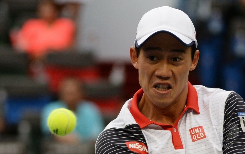 その後、錦織は自身のサービスゲームをキープしたものの、負傷の影響からか続く2ゲームを失い、大会から姿を消した。(c)AFP