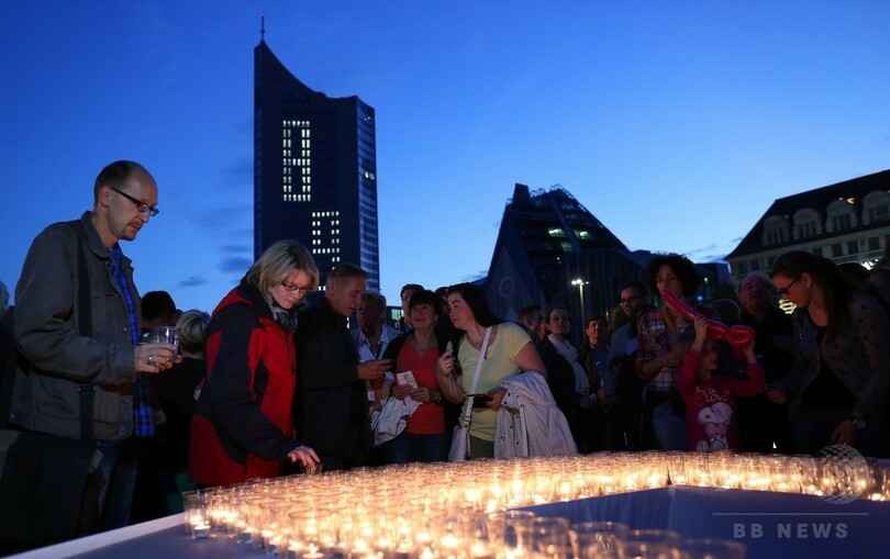 【10月10日 AFP】ドイツ東部ライプチヒ(Leipzig)で9日、「ベルリンの壁(Berlin Wall)」崩壊につながる重大な分岐点となった旧東ドイツの民主化要求デモから25年を記念する式典が開かれ、約20万人がキャンドル行進に参加した。