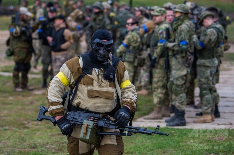 【10月12日 AFP】ロシア・モスクワ(Moscow)から約40キロ離れたアラビノ(Alabino)にある国防省のタマン師団(Taman Division)の戦車射撃演習場で4日、第2次世界大戦(World War II)中のウクライナの戦いに基づいたサバイバルゲーム(迷彩服を着用し、敵味方に分かれてエアガンを撃ち合うゲーム)が行われ、愛好者たちが参加した。(c)AFP