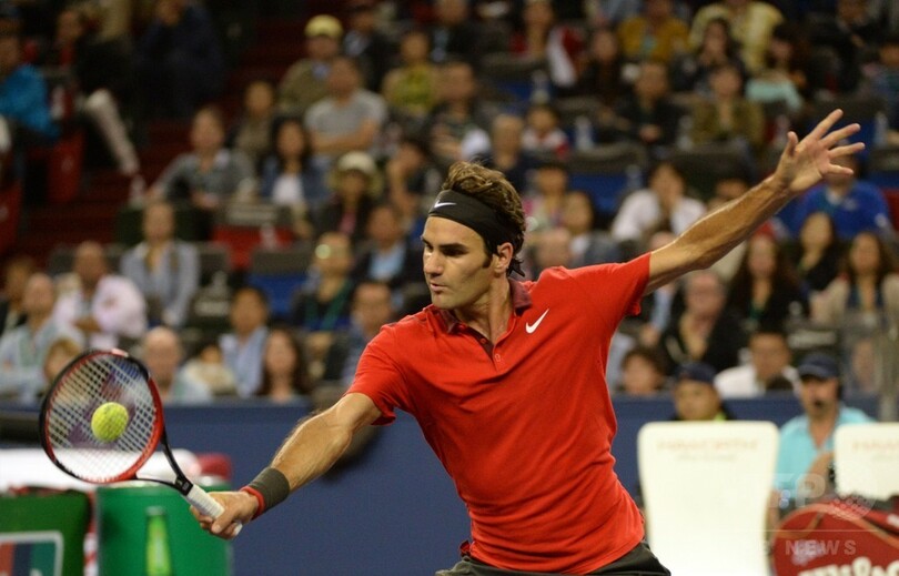 上海マスターズでのフェデラーの最高成績は、2010年の準優勝となっているが、上海(Shanghai)で行われた2006年と2007年のテニス・マスターズ・カップ(Tennis Masters Cup、現ATPワールドツアー・ファイナル)では、トロフィーを掲げた経験がある。(c)AFP/Neil CONNOR