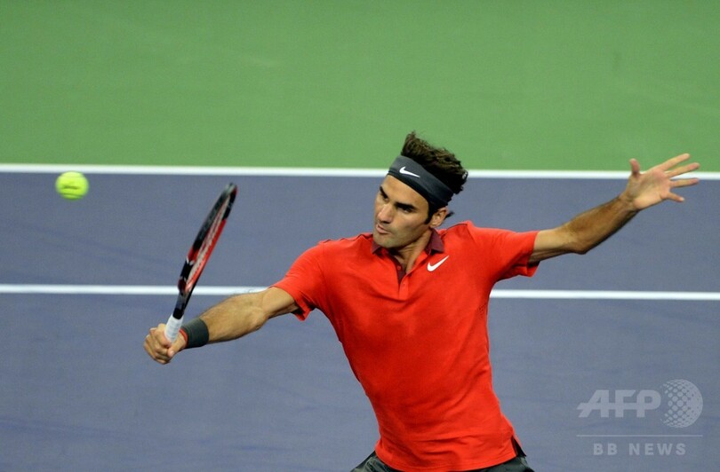 フェデラーは2006年と2007年に上海(Shanghai)で行われたテニス・マスターズ・カップ(Tennis Masters Cup)で優勝していたものの、同都市でのマスターズ1000の最高成績は、2010年大会(2010 Shanghai Rolex Masters)での準優勝だった。(c)AFP/Neil CONNOR