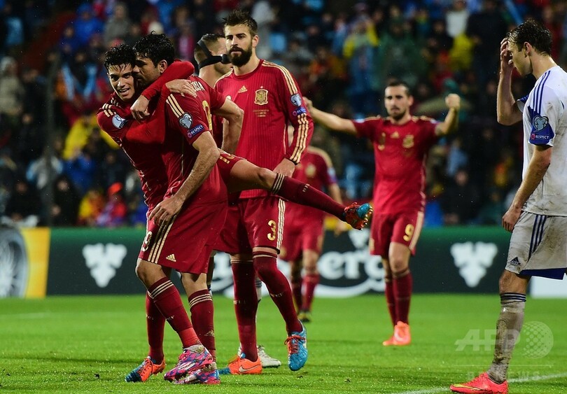 【10月13日 AFP】サッカー欧州選手権2016(UEFA Euro 2016)は12日、予選の試合が各地で行われ、グループCのスペインは、ジエゴ・コスタ(Diego da Silva Costa)が同国代表としての初ゴールを決め、4-0でルクセンブルクに快勝した。