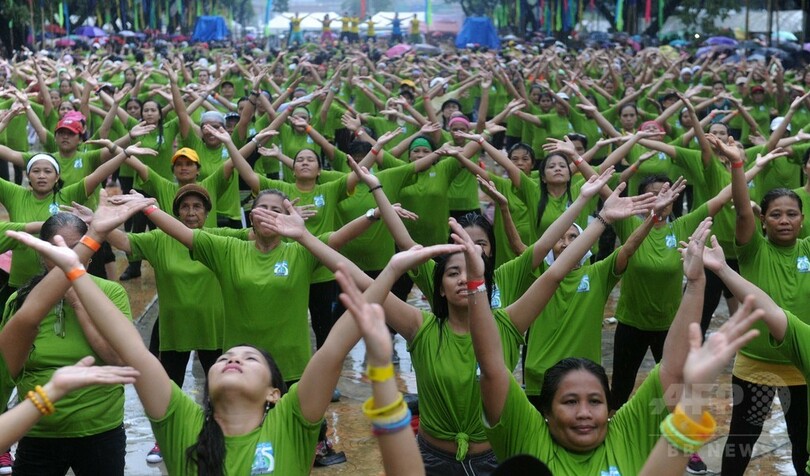 【10月13日 AFP】フィリピン・マニラ(Manila)首都圏のケソン市(Quezon City)で12日、同市創立75周年の記念イベントの一環として、住民らが市内の通りでズンバを披露した。参加人数9000人以上を掲げ、その規模で世界記録の更新を目指した。(c)AFP