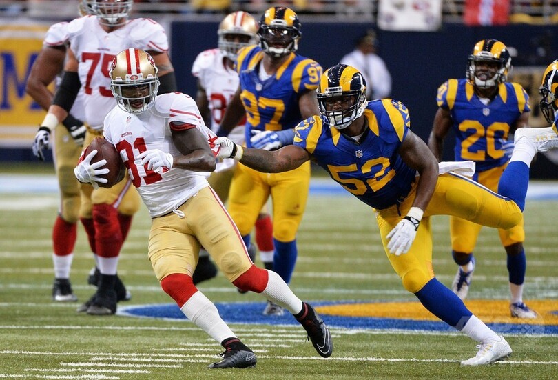 フォーティーナイナーズは3-14と追い上げを開始すると、前半残り時間30秒の場面でブランドン・ロイド(Brandon Lloyd)がラムズのCBジャノリス・ジェンキンス(Janoris Jenkins)を振り切り、一気に左サイドラインを駆け上がった。