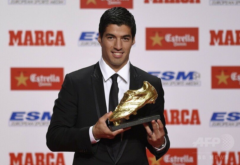【10月16日 AFP】スペイン1部リーグのFCバルセロナ(FC Barcelona)に所属するルイス・スアレス(Luis Suarez)が15日、欧州リーグ内の得点王に贈られる欧州ゴールデンシュー賞を受賞した。
