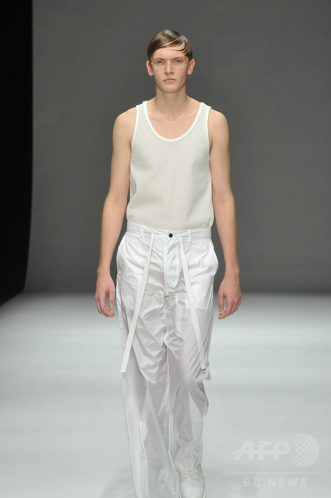 今シーズンは、「インテリジェンス」をテーマに3セクションでショーを構成。科学者や研究者をテーマにした白いルックに続いて、中盤では、インテリジェンスの高いアートやスカルプチュアをテーマにドローイングの手書きのような柄を取り入れた。「グレーやベージュのルックは、人間の皮膚を拡大して切り取った」と北澤。ショー後半は、クラシック音楽をテーマに黒い服が並んだ。 (c)MODE PRESS