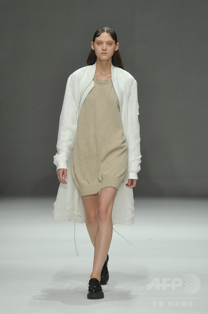 今シーズンは、「インテリジェンス」をテーマに3セクションでショーを構成。科学者や研究者をテーマにした白いルックに続いて、中盤では、インテリジェンスの高いアートやスカルプチュアをテーマにドローイングの手書きのような柄を取り入れた。「グレーやベージュのルックは、人間の皮膚を拡大して切り取った」と北澤。ショー後半は、クラシック音楽をテーマに黒い服が並んだ。 (c)MODE PRESS