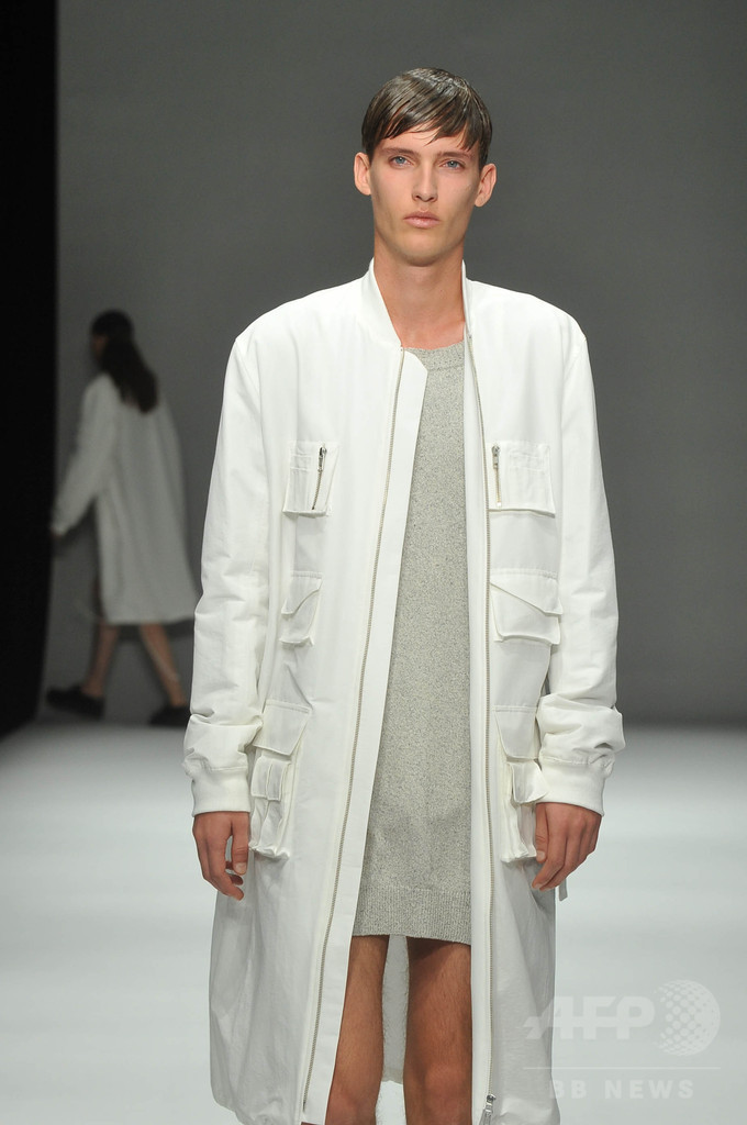 今シーズンは、「インテリジェンス」をテーマに3セクションでショーを構成。科学者や研究者をテーマにした白いルックに続いて、中盤では、インテリジェンスの高いアートやスカルプチュアをテーマにドローイングの手書きのような柄を取り入れた。「グレーやベージュのルックは、人間の皮膚を拡大して切り取った」と北澤。ショー後半は、クラシック音楽をテーマに黒い服が並んだ。 (c)MODE PRESS