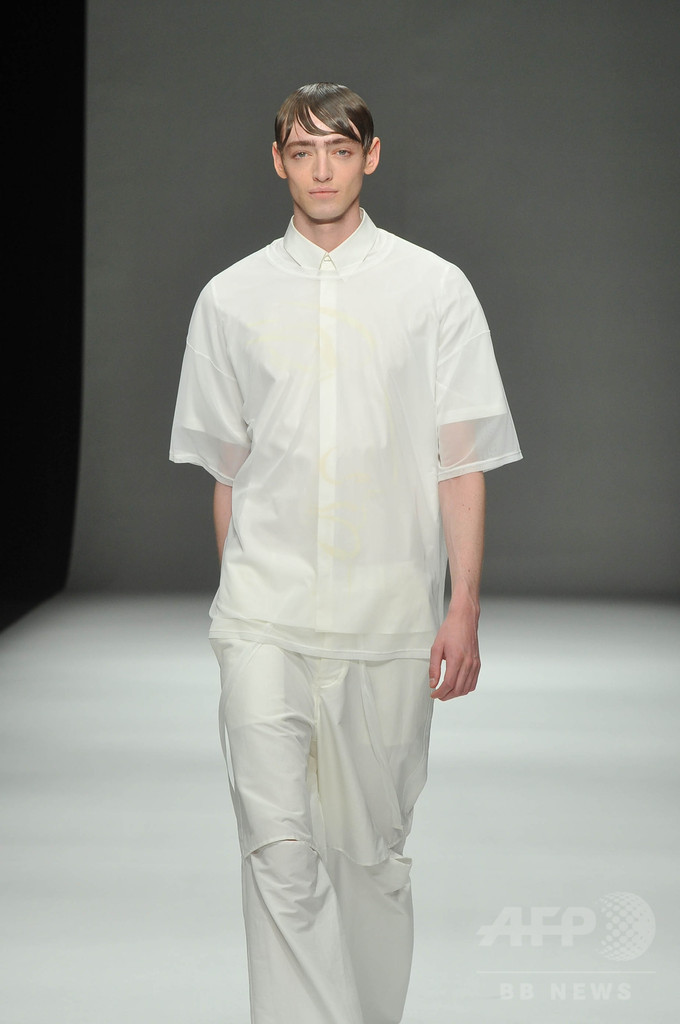 今シーズンは、「インテリジェンス」をテーマに3セクションでショーを構成。科学者や研究者をテーマにした白いルックに続いて、中盤では、インテリジェンスの高いアートやスカルプチュアをテーマにドローイングの手書きのような柄を取り入れた。「グレーやベージュのルックは、人間の皮膚を拡大して切り取った」と北澤。ショー後半は、クラシック音楽をテーマに黒い服が並んだ。 (c)MODE PRESS