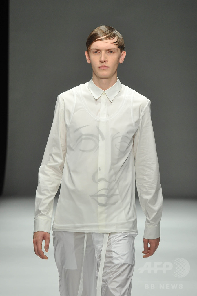 今シーズンは、「インテリジェンス」をテーマに3セクションでショーを構成。科学者や研究者をテーマにした白いルックに続いて、中盤では、インテリジェンスの高いアートやスカルプチュアをテーマにドローイングの手書きのような柄を取り入れた。「グレーやベージュのルックは、人間の皮膚を拡大して切り取った」と北澤。ショー後半は、クラシック音楽をテーマに黒い服が並んだ。 (c)MODE PRESS