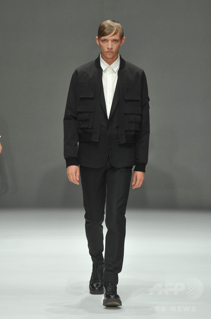 今シーズンは、「インテリジェンス」をテーマに3セクションでショーを構成。科学者や研究者をテーマにした白いルックに続いて、中盤では、インテリジェンスの高いアートやスカルプチュアをテーマにドローイングの手書きのような柄を取り入れた。「グレーやベージュのルックは、人間の皮膚を拡大して切り取った」と北澤。ショー後半は、クラシック音楽をテーマに黒い服が並んだ。 (c)MODE PRESS
