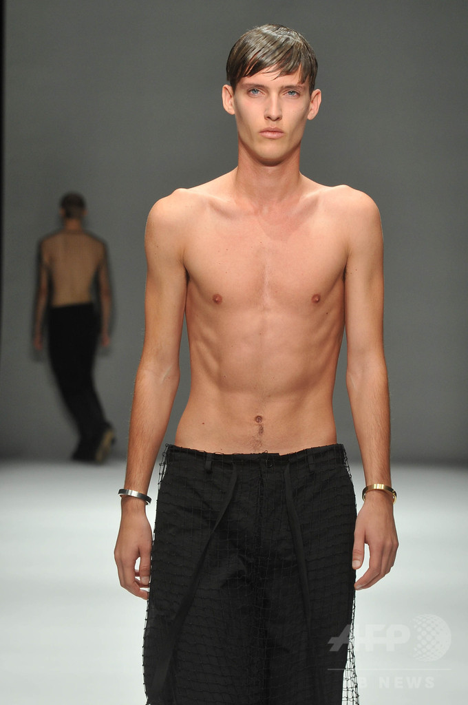 今シーズンは、「インテリジェンス」をテーマに3セクションでショーを構成。科学者や研究者をテーマにした白いルックに続いて、中盤では、インテリジェンスの高いアートやスカルプチュアをテーマにドローイングの手書きのような柄を取り入れた。「グレーやベージュのルックは、人間の皮膚を拡大して切り取った」と北澤。ショー後半は、クラシック音楽をテーマに黒い服が並んだ。 (c)MODE PRESS