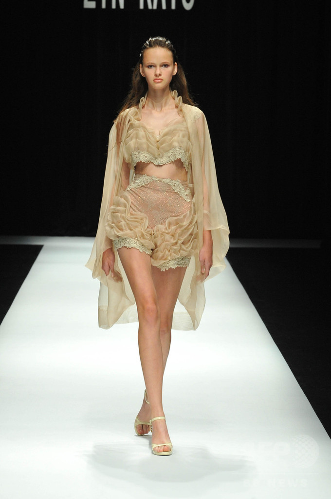 今シーズンは、「Beyond Elegance(エレガンスの彼方に)」をテーマに新作を発表。「ここのところ、ようやくエレガントな方向にファッションが戻ってきた。ちょっと我慢してオシャレしようよ、ということを表現したかった。オシャレするって我慢を強いられることだと思う」と加藤。(c)MODE PRESS
