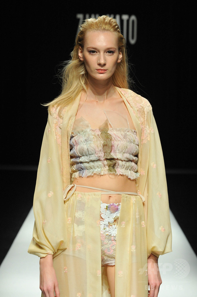今シーズンは、「Beyond Elegance(エレガンスの彼方に)」をテーマに新作を発表。「ここのところ、ようやくエレガントな方向にファッションが戻ってきた。ちょっと我慢してオシャレしようよ、ということを表現したかった。オシャレするって我慢を強いられることだと思う」と加藤。(c)MODE PRESS