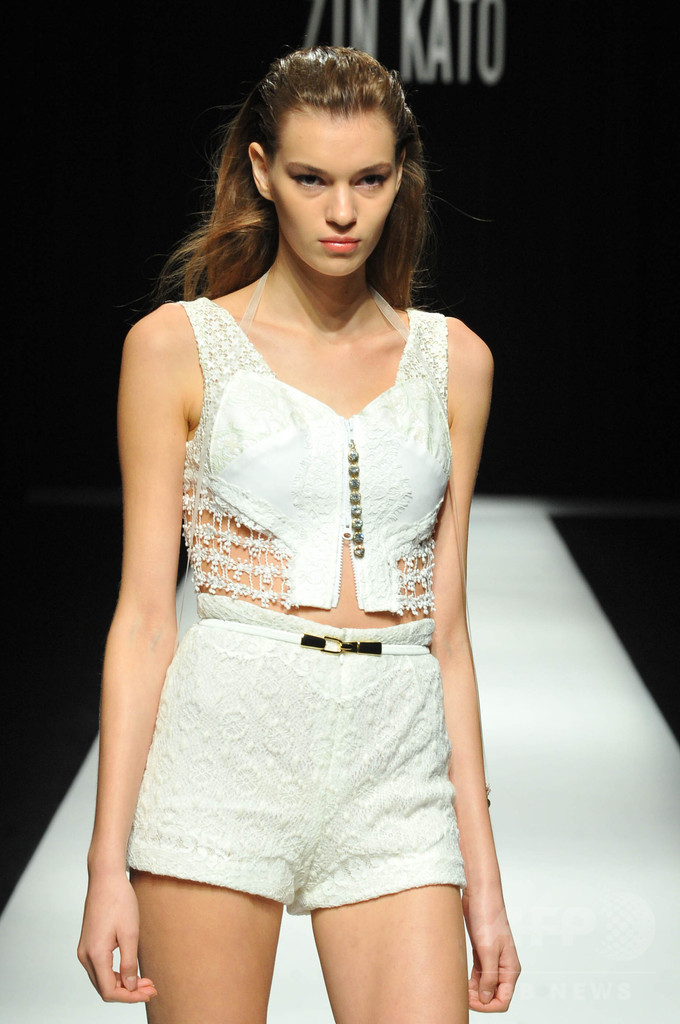 今シーズンは、「Beyond Elegance(エレガンスの彼方に)」をテーマに新作を発表。「ここのところ、ようやくエレガントな方向にファッションが戻ってきた。ちょっと我慢してオシャレしようよ、ということを表現したかった。オシャレするって我慢を強いられることだと思う」と加藤。(c)MODE PRESS