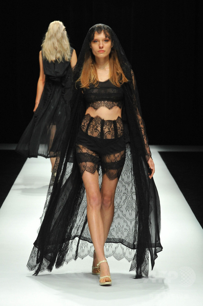 今シーズンは、「Beyond Elegance(エレガンスの彼方に)」をテーマに新作を発表。「ここのところ、ようやくエレガントな方向にファッションが戻ってきた。ちょっと我慢してオシャレしようよ、ということを表現したかった。オシャレするって我慢を強いられることだと思う」と加藤。(c)MODE PRESS