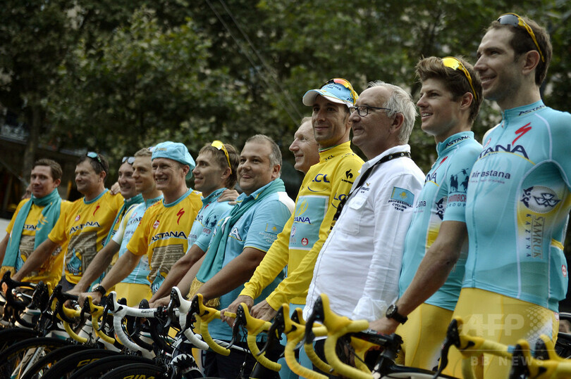 アスタナは、現役時代に血液ドーピングで2007年から2年間の出場停止処分を受けた、アレクサンドル・ヴィノクロフ(Alexandre Vinokourov、カザフスタン)氏が代表を務めている。(c)AFP