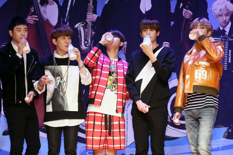 【10月17日 STARNEWS】韓国・ソウル(Seoul)の梨花女子大学併設メディア高校(Ewha Media High School)で14日、アイドルグループ「ブロック・ビー(Block.B)」が「青少年国産牛乳愛キャンペーン」の広報大使に任命された。(c)STARNEWS