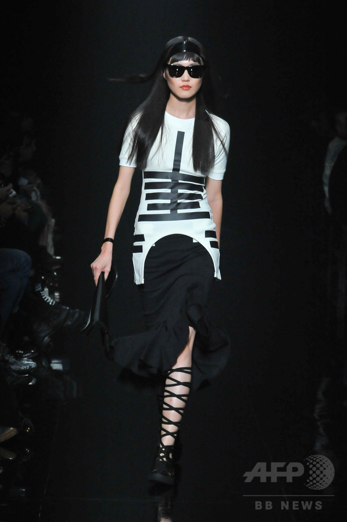 「今シーズンは、色々な文化を織り交ぜつつ、羽根などを使ってデザインしたかった。パリやミラノといった色々な都市がありますが、その文化の観点から、全てをミックスさせて、音楽もそうですが、ダンス風にまとめて全体的にバランスをとりました」とアンドレア・ポンピリオ。(c)MODE PRESS
