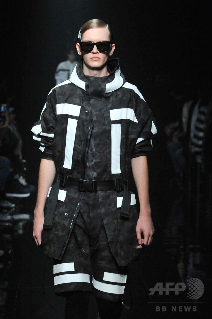 「今シーズンは、色々な文化を織り交ぜつつ、羽根などを使ってデザインしたかった。パリやミラノといった色々な都市がありますが、その文化の観点から、全てをミックスさせて、音楽もそうですが、ダンス風にまとめて全体的にバランスをとりました」とアンドレア・ポンピリオ。(c)MODE PRESS
