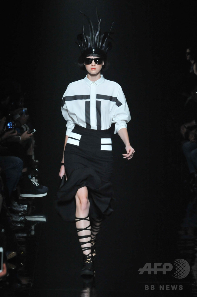 「今シーズンは、色々な文化を織り交ぜつつ、羽根などを使ってデザインしたかった。パリやミラノといった色々な都市がありますが、その文化の観点から、全てをミックスさせて、音楽もそうですが、ダンス風にまとめて全体的にバランスをとりました」とアンドレア・ポンピリオ。(c)MODE PRESS